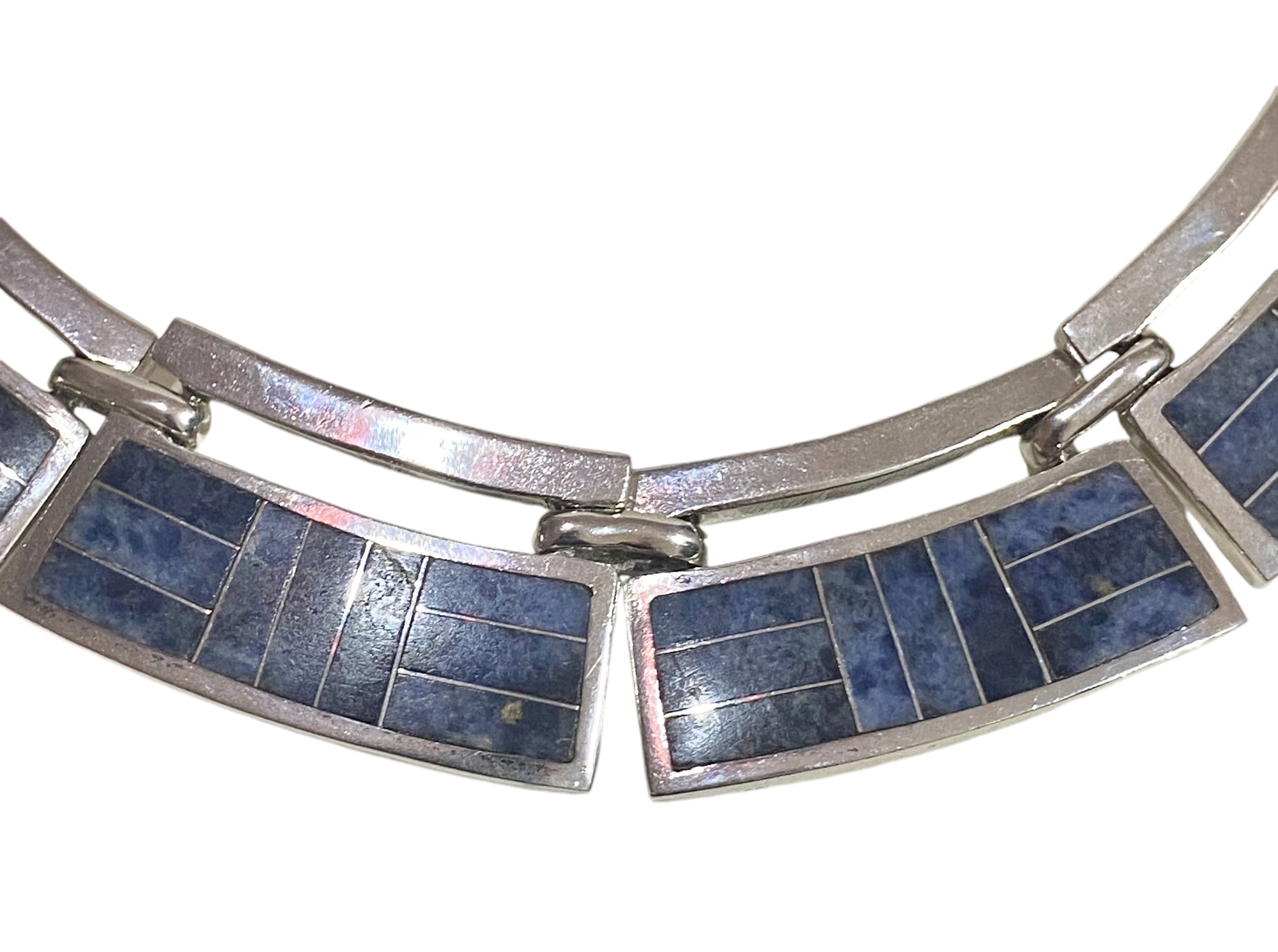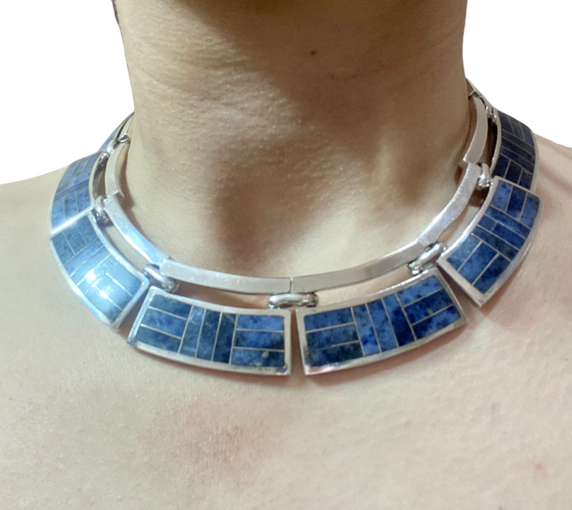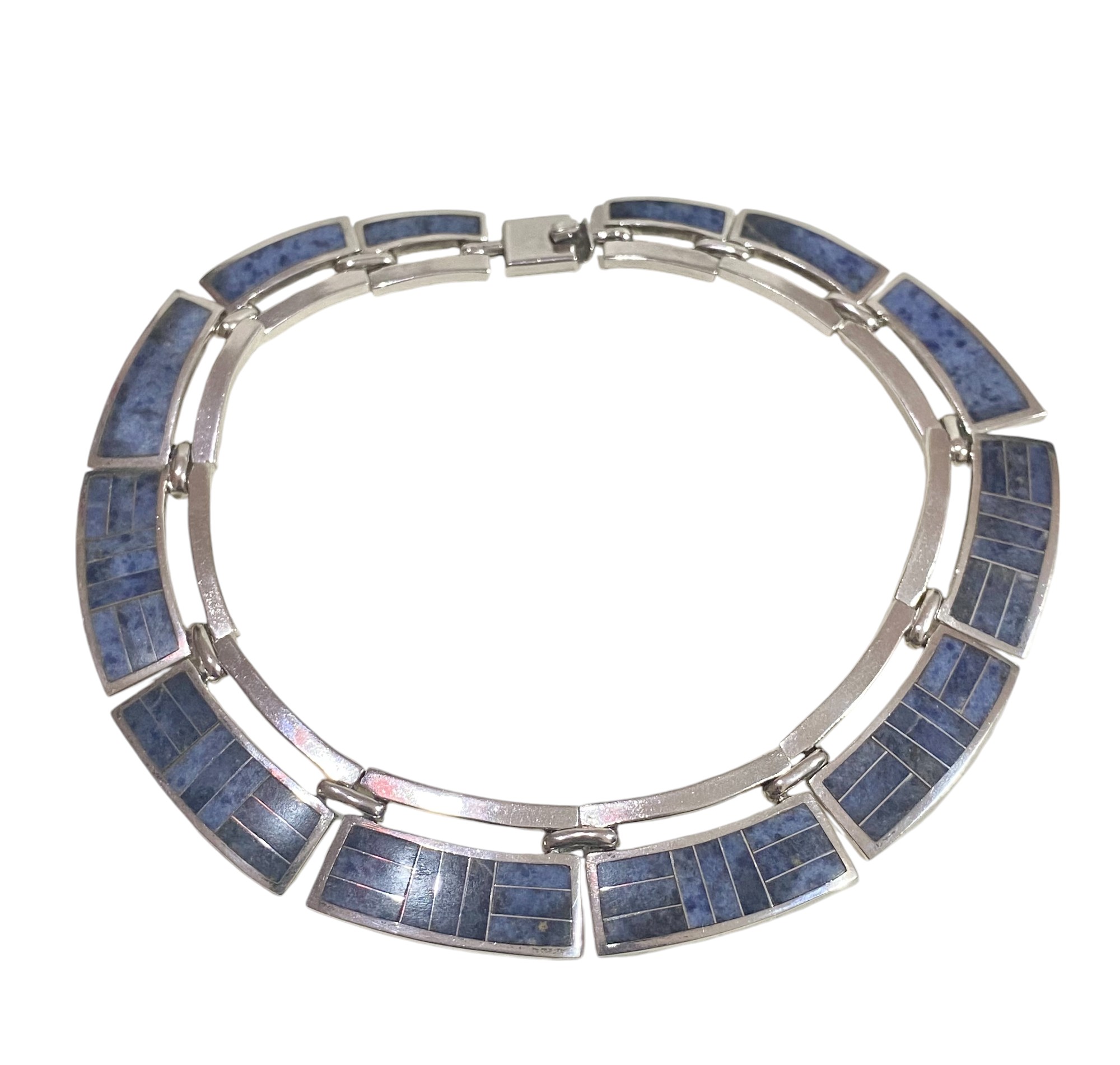 Gargantilla de Plata con Lapislazuli. Diseño Mexicano con sello.