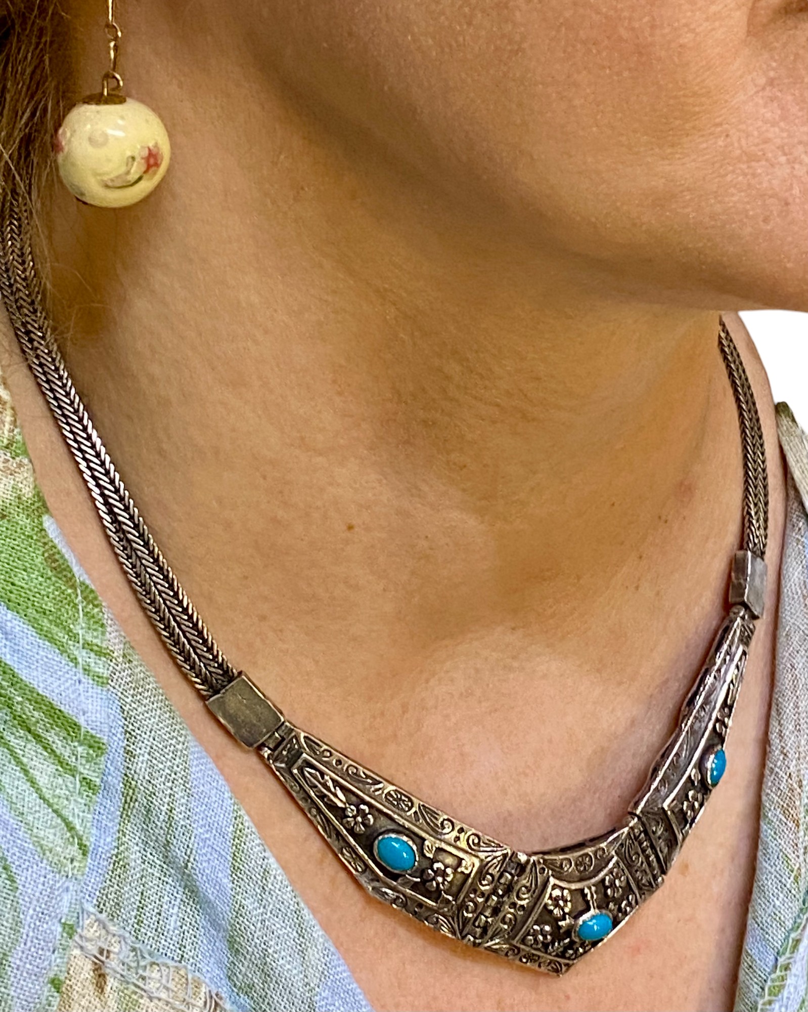 Antigua Gargantilla en Plata y Turquesas cantidad