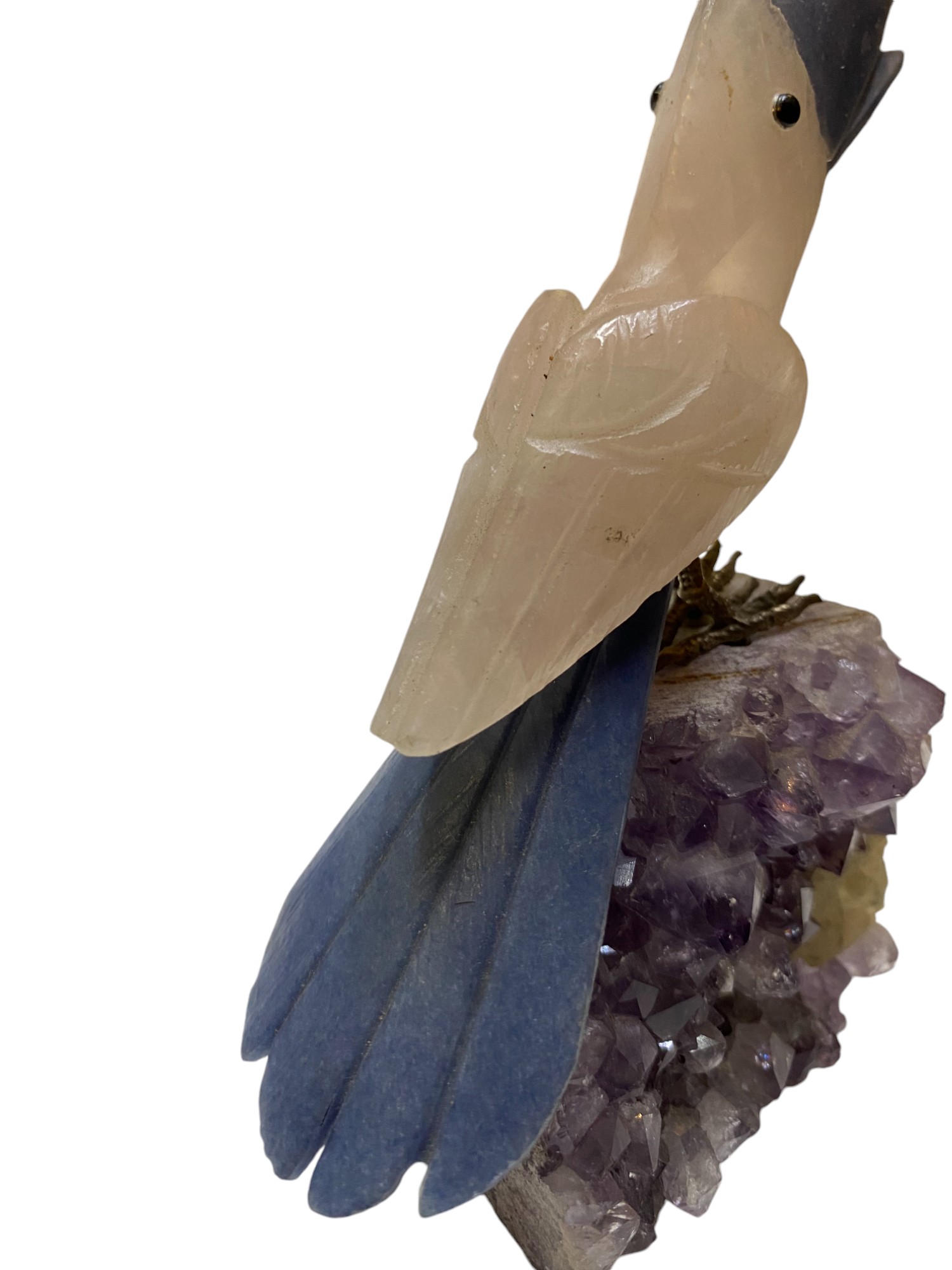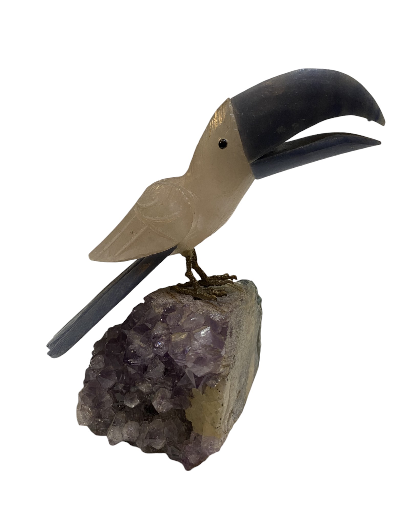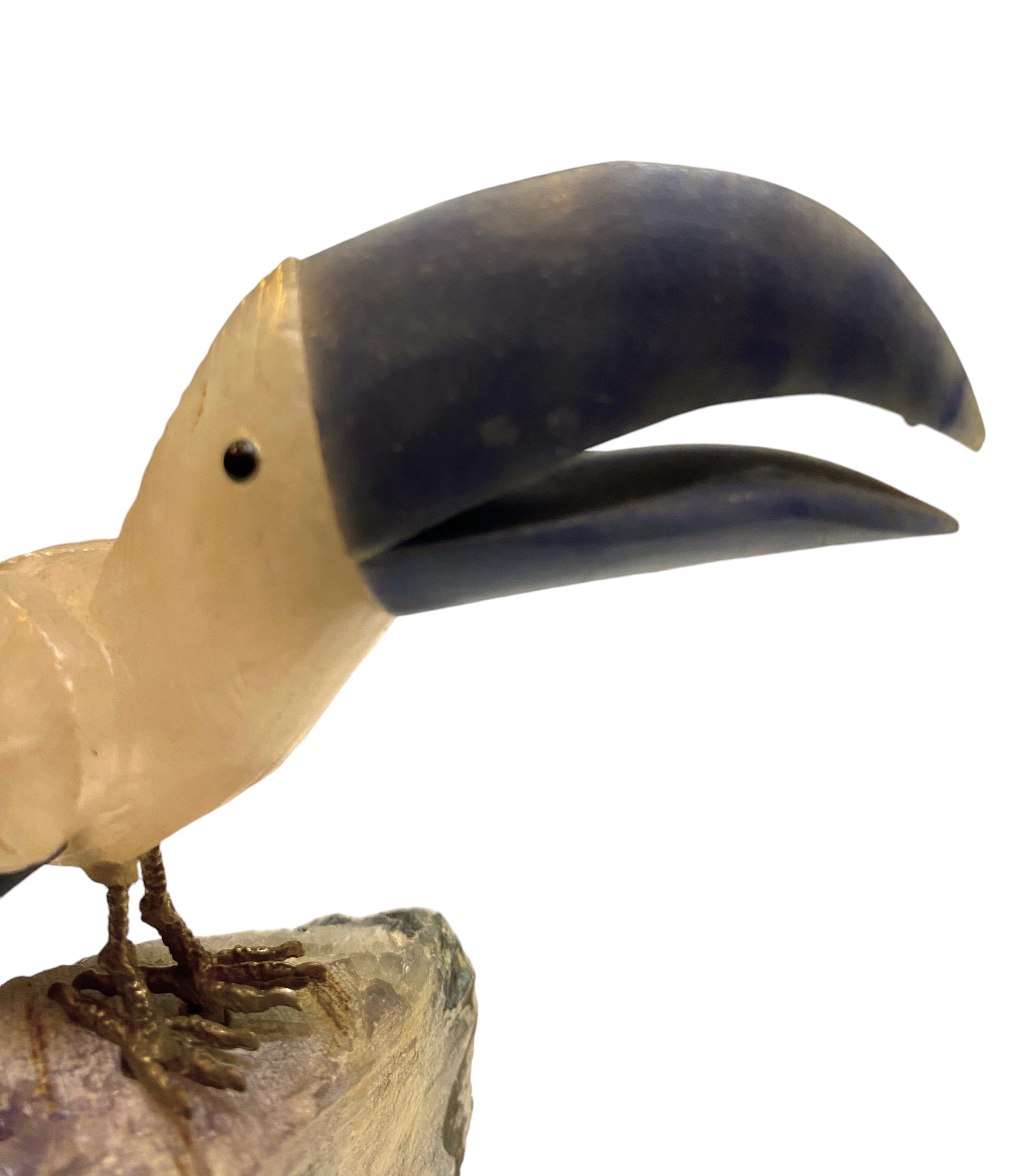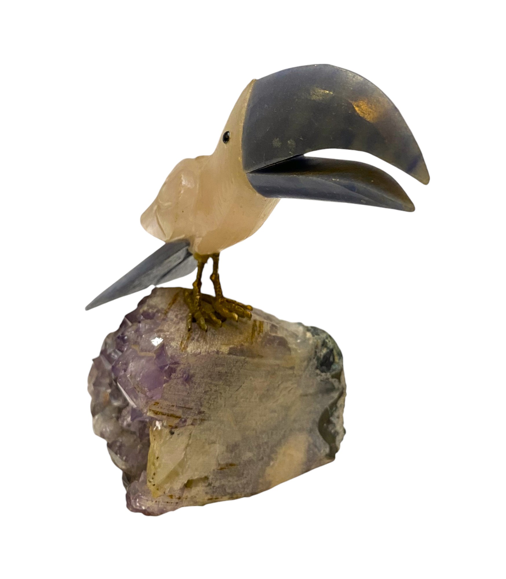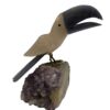 Figura de Ave (Tucán) con distintos cuarzos tallados a mano y base de Amatista.