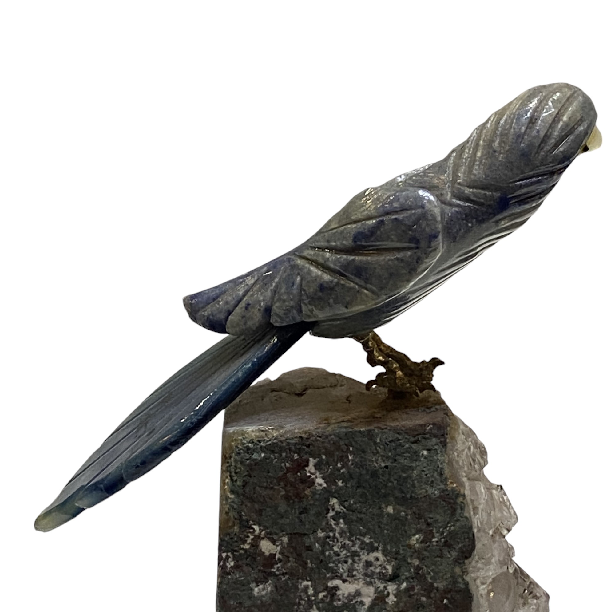 Figura de Ave (cacatúa) – Piedra Tallada con Base de Amatista