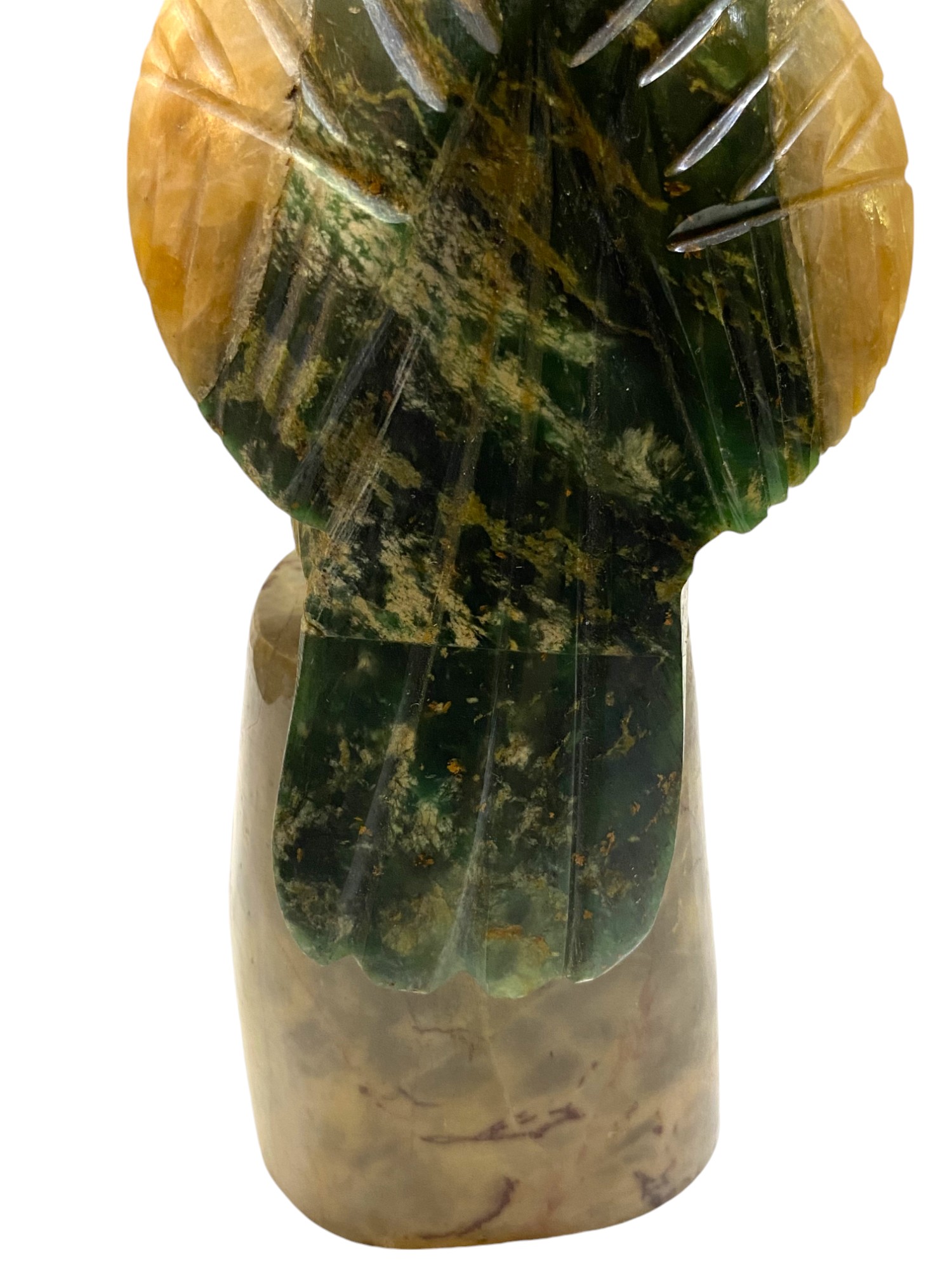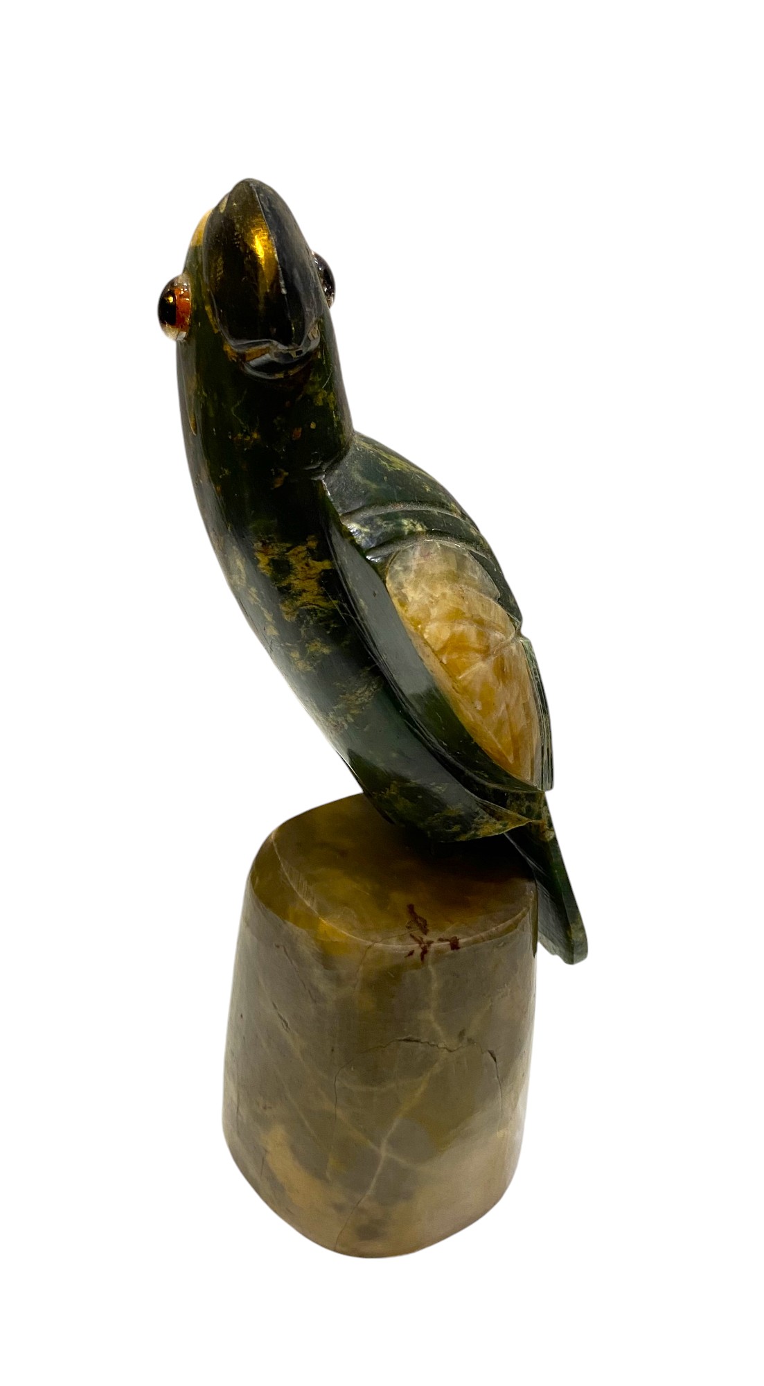 Hermosa figura de loro en alabastro policromada. Impecable estado. Pie desmontable.